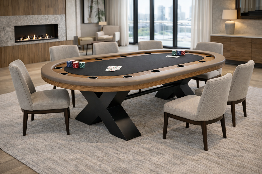 We’re set up to match multiple tables in the same wood and finish — pool, ping pong, shuffleboard, and poker — so your game room feels dialed.