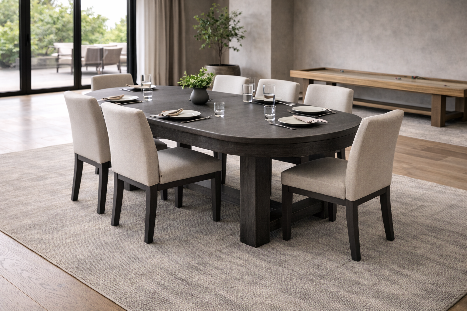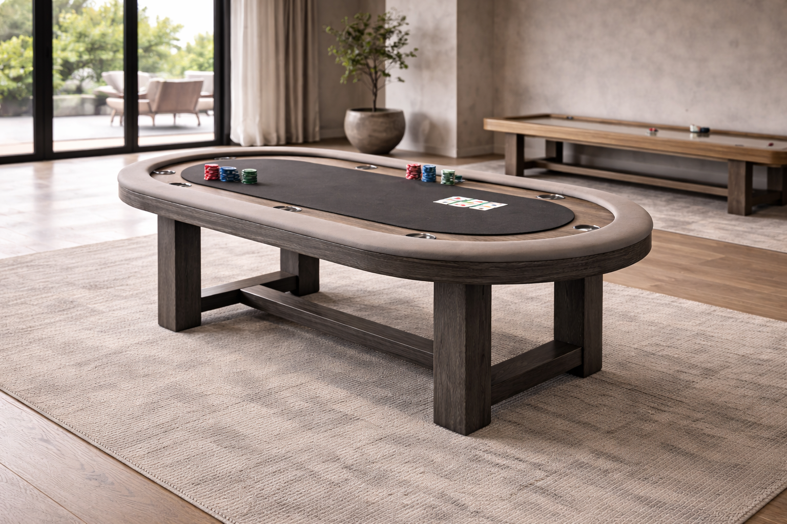 The Whistler Poker Table brings the clean, grounded design language of our Whistler Collection into a premium oval poker format.