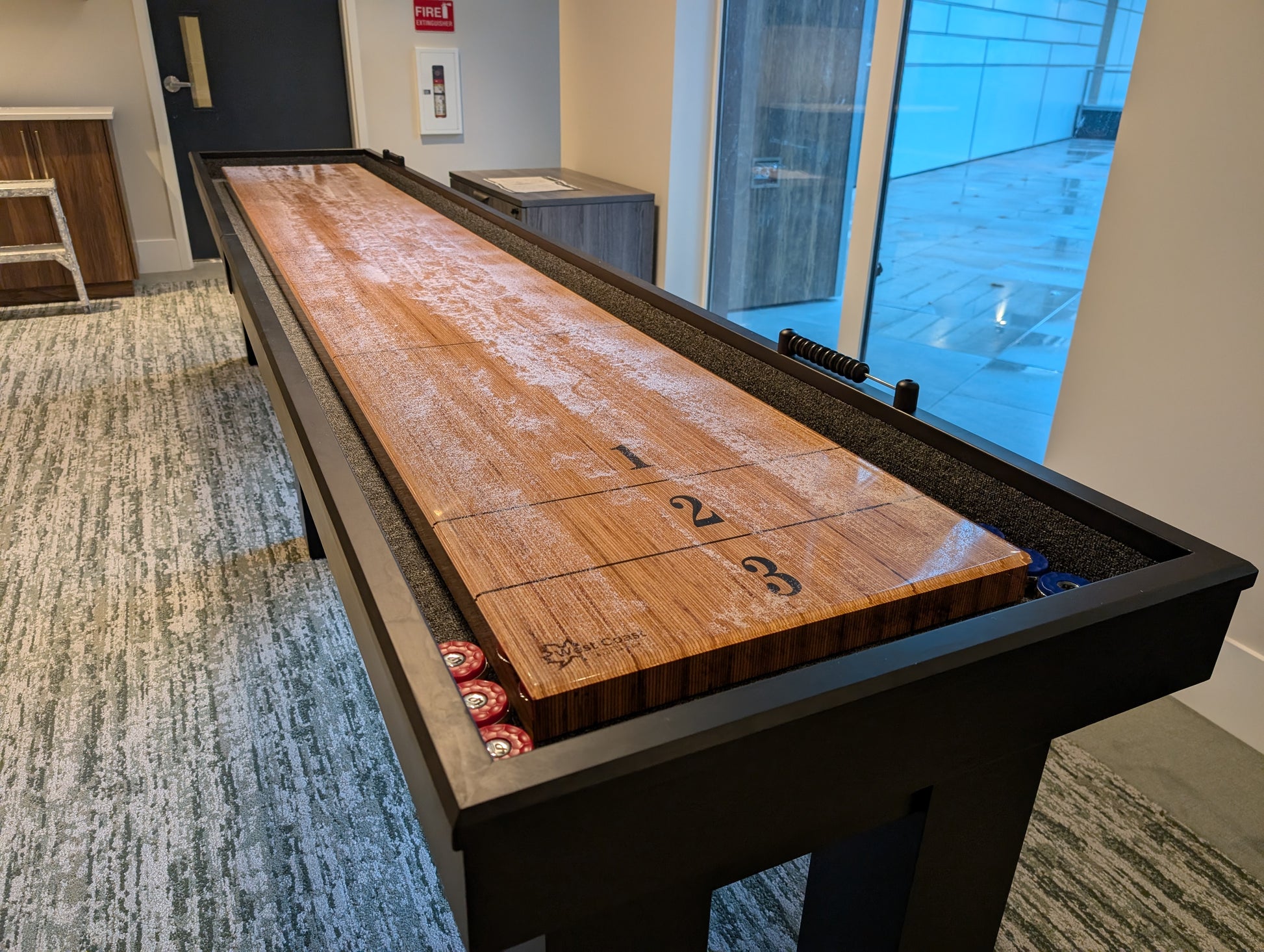 Your home deserves symmetry, and the Yaletown is designed to be the perfect companion to your space or your existing pool table. This table features a fully customizable wood frame that we finish to match your specific décor or stain selection, contrasted with a premium charcoal felted interior. We build the playing surface to your specifications, available with a playing deck up to 12 feet in length.
